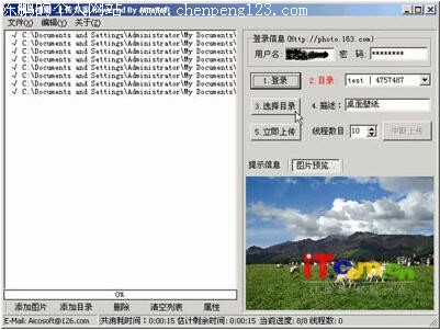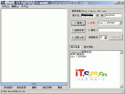 论坛上看到好玩的图片,是否想要和网友们分享呢?旅游归来拍了风景留念照片,是否想要和你的朋友们分享呢?用QQ和MSN传送的话虽然方便,但是要双方都在线才行。如果你想把照片展示给多个朋友的话,这种方法就显得非常麻烦了。还好,现在不少网站都推出了网络相册,将你的照片上传到相册中去,朋友们只要访问你的相册就能看到你的照片了。 网易是国内比较早推出网络相册的网站,现在经过升级后,不但仍然免费,而且没有空间的限制,想放多少照片就放多少。下面先简单介绍一个网易相册。 网易相册的简介 网易相册的地址是http://photo.163.com,如果你拥有网易通行证的话,那么马上可以使用相册。如果没有的话可以注册一个,注册过程和电子邮箱注册过程差不多,按照网页中的提示即可,总共也只有三个步骤,在此就不赘述了。它采用1000M带宽接入,访问速度比较快,而且不限容量,无论你想上传多少照片都可以,但是对单个文件仍然有限制,每张图片的大小只能为2.5M,上传包含图片的ZIP压缩包文件的话,大小限制为5M。每次操作只能上传一个文件,如果你有很多照片的话,要重复N次同样的操作步骤,浪费时间。而且由于使用IE上传,只能单线程,不能发挥你宽带的最大速度。现在Aicosoft开发出一款名叫“网易相册上传专家”的软件,支持多线程上传,还支持文件夹上传,只要将你要上传的照片文件放在一个文件夹内,软件会自动帮你一张一张上传,大大方便图片的上传。 软件简介 软件名称:网易相册上传专家 软件大小: 328K 软件版本: V0.5(免费软件) 特点简介: 网易网络相册的管理软件,支持多线程上传,支持文件夹上传。 “网易相册上传专家”是一款绿色软件,不需要安装,双击程序文件即可运行。(图1)