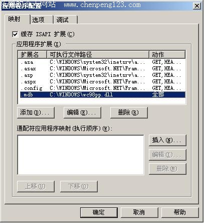 我们在 IIS属性---主目录---配置---映射---应用程序扩展那里添加.mdb文件的应用解析。注意这里的选择的DLL(或EXE等)似乎也不是任意的,选择不当,这个MDB文件还是可以被下载的, 注意最好不要选择选择asp.dll等。你可以自己多测试下