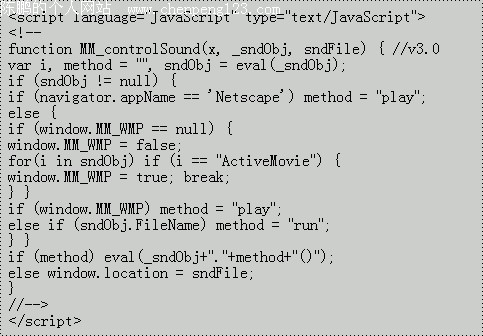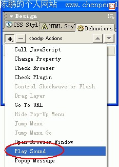 一、直接插入法 1.打开一张需要插入背景音乐的网页,在菜单中找到这样的命令: Windows - > Behaviors,调出“Behaviors”行为面板,如下图所示(Dreamweaver MX 的面板):