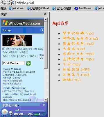 第四步:在“Title”栏中输入网页标题,勾选“Background image”选择网页背景图片,点击“Finish&Save”按钮生成音乐网页。如果生成的文件链接代码不符合您的要求,可点击“Clear the list”按钮清除生成的所有链接代码重新再来。音乐网页效果如图2所示,在线欣赏MP3吧。快去下载,该软件可是真正的免费软件啊。