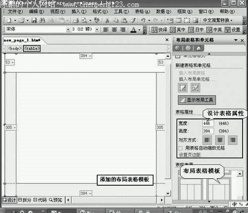 很多朋友对FrontPage2003中增加的网页布局功能很感兴趣,现在我们一起来深入了解这一实用功能。 用FrontPage2003的“布局表格和单元格”功能布局网页时,需要通过两部分来完成。 首先通过“布局表格”功能来为网页布局创建一个框架,然后通过“布局单元格”功能为该框架填充包含有网页内容(包括文本、图像、Web部件和其他元素)的区域,也就是单元格。 下面我们就以设置一个单位网站首页为例来了解一下用布局表格给网页布局的过程。 一、创建布局表格 1.创建布局表格 打开一个空白网页,并切换到“设计”视图下,单击“表格”菜单中的“布局表格和单元格”命令,随后在右侧弹出一个任务窗口(图1),在该任务窗口下面程序提供了多种表格布局模板,在此单击其中需要的模板即可将该模板添加到网页中。