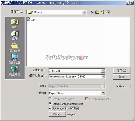 点击“OK”按钮,这时候会出现选择文件夹对话框,选择库文件所在的Library文件夹,如图16所示。选择“打开”,回到“Export”对话框中给库文件命名即可,如果图像包含切片,我们还可以选择切片选项。选择“Put images in subfolder”(将图像放入子文件夹)可以选择一个单独的文件夹来保存图像。最后单击“保存”即可。如图17所示。