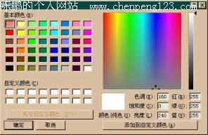 2.选择前景色。选择格式-〉字体,在字体颜色中选取"其他颜色"。弹出颜色对话框后选择"自定义",弹出Windows的标准颜色对话框(如图):