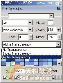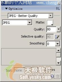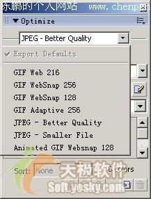 网页图像的要求是在尽可能短的传输时间里,发布尽可能高质量的图像。因此在设计和处理网页图像时就要求图像有尽可能高的清晰度与尽可能小的尺寸,从而使图像的下载速度达到最快。为此,必须对图像进行优化。 在Fireworks 中,所有的优化操作都可以利用“Optimize”面板在工作环境中直接进行,优化设置仅用于输出图像。因此,用户可以自由地对图像进行优化并调整其优化设置,而不必担心会损坏原图。并且可以通过预览不同的优化结果,随时根据需要对图像进行修改。另一种简便快捷的优化方法是使用Fireworks的“Export Preview”对话框在图像的导出时进行优化。 设置好优化输出参数后,即可按照所做设置输出相关文件了。此外为了能够借助其他软件(如Photoshop等)继续处理文档,用户也可将文档以选定其他格式(如PSD等)输出。 了解了Fireworks优化图片的方法,在其他的图像处理软件中,大家也能轻松掌握图像优化的类似应用。 一、图像优化步骤和方案选择 (一)利用优化面板设置图像优化的步骤 1. 打开一幅文件,并在图像编辑窗口中打开Preview、2-up或4-up选项卡。 2. 在“Optimize”面板中选择文件格式,如图1所示,此时应根据文件类型选择不同的文件格式。例如,如果图中重复颜色区域较多的话,则适于使用GIF格式,对于这种格式,可相应地使用“Dither”(抖动)来补偿因颜色减少而造成的图像质量下降。对于JPEG格式,可使用“Smooth”(平滑)来使图像稍微模糊,从而减小图像大小,一般照片使用 JPEG格式可能更好一些。
