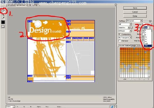 step2:在PhotoShop中选择file-save for web...来输出,这里要注意一些参数的选择: