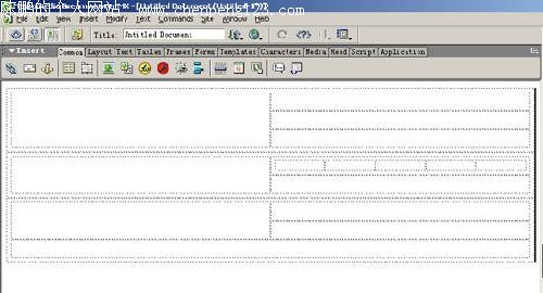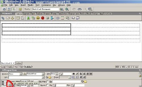 注意,把cellpadding,cellspacing,border三项值设为0,这个很重要;因为图片中我们不希望看到空隙和错位;然后再在第一行中插入一个三行两列的表格,并合并左边三列的表格,如图: