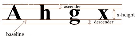 ex 和 em 类似,但不尽相同, 回到上面的图示,x-height 对于每一种字体来说是不同的,ex 是根据字体的 x-height 来定义字体的大小。