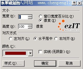 在网页中画条横线都用<hr>语句,即可插入一条水平线,但如何插入一条竖直线呢? 我们既可以利用<hr>的方法,也可以利用插入表格的方法。 方法一:利用<hr>语句插入竖直线。在新建网页中插入一条水平线,然后将此线选中,单击鼠标右键,选择“水平线属性”命令,将其宽度设为1个像素,高度为100像素,一条高为100像素的垂直线就出来了(图1)。
