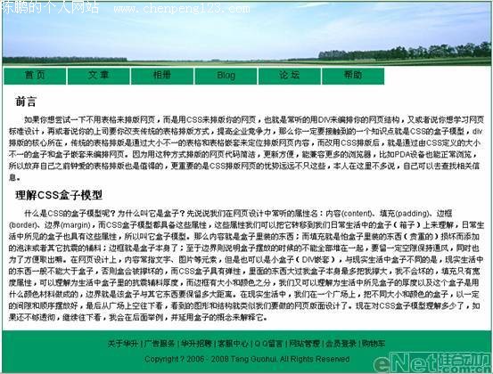 好了,此文到此结束,更多内容,如:CSS中的盒子宽度计算,浏览器兼容问题,XHTML规范化写法等请大家去参考其它资料。如果觉得此文还可以,看过之后记得跟帖,你的鼓励是我不断出新文章的动力^-^
