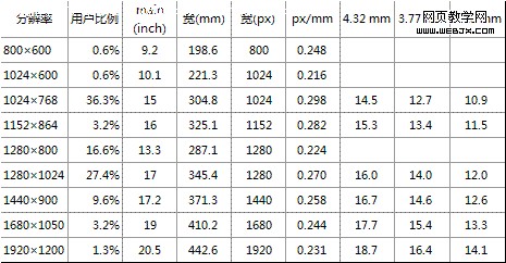 第一步:统计用户主要的分辨率和对应的屏幕大小。