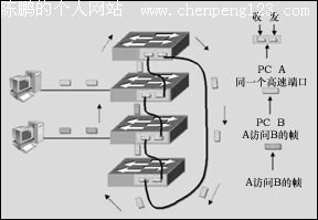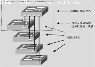 级连扩展 级连扩展模式是最常规,最直接的一种扩展方式,一些构建较早的网络,都使用了集线器(HUB)作为级连的设备。因为当时集线器已经相当昂贵了,多数企业不可能选择交换机作为级连设备。那是因为大多数工作组用户接入的要求,一般就是从集线器上一个端口级连到集线架上。在这种方式下,接入能力是得到了很大的提高,但是由于一些干扰和人为因素,使得整体性能十分低下,只单纯地满足了多端口的需要,根本无暇考虑转发交换功能。现在的级连扩展模式综合考虑到不同交换机的转发性能和端口属性,通过一定的拓扑结构设计,可以方便地实现多用户接入。级连模式的典型结构如图一所示。