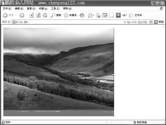 前日笔者接到朋友的求救电话,朋友刚刚旅行归来,在整理数码相机中的照片时,竟然将所有照片统统给删除了。遇到这种情况,只要“出事”后不要对磁盘进行读写操作,恢复的可能性还是挺大的。 于是笔者用数据恢复软件对图片进行了恢复,效果还不错,大部分的照片都找回来了。但是有几张照片却出现了问题:从体积上来看,文件应该还在,并且缩略图也能正常显示,但双击打开时却老是提示绘图失败,使用了专门的图片修复软件也是如此,事情一下子陷入了僵局。 能否用其他软件打开呢?笔者又试着通过Photoshop、画图等一系列绘图软件打开,结果仍然无济于事。最后,抱着试一试的想法,笔者用网页浏览器打开图片却出现了不一样的效果,图片被打开了!只是画面有残缺,但残缺很少,通常是画面下方有小灰块(如图)。笔者认为这可能是浏览器和其他软件打开图片机制不同所造成的。