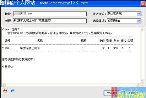 近年来电子商务的盛行,越来越多的人们选择在网上开商店,随着此波大潮,我也开了一个无线上网卡专卖店。刚开时,生意不是太理想,操作起来倒非常简单,随着我的生意越来越旺,便在多个网店上开了分店,生意是好起来了,但是管理起来却成了头疼的事情,经常出现东差西错的问题,后来经过朋友介绍使用了一款“网店管家”的进销存软件,的确帮我省了不少心。 下面来体验一下我的销售过程:主要通过以下几个过程实现订单登记、确认订单、收款发货、等待完成。 订单登记 2006年某月某日早晨,当我打开电子邮件时,“淘宝提醒您:店铺有新留言”打开一看,哇!是网民发给我的订单,太棒啦!来生意啦!此时立刻启动“网店管家”准备登记客户订单,由于此软件提供一个快捷登记方法,我直接将成交通知邮件粘贴到“邮件分析”栏中,然后点击“分析”,软件就会对客户资料自动进行分析,不到1分种,“登记”完成(图1)。