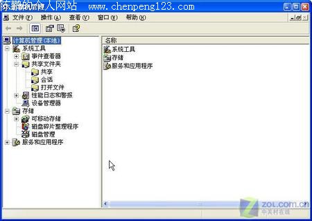 在Windows2000/XP操作系统中,可以随时看到局域网中的哪个用户正在访问你的共享文件夹。具体的查看方法如下:打开“控制面板”选择“管理工具”—“计算机管理”选项,出现“计算机管理”窗口,如图所示。