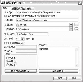 在本文中,将教会大家如何面对影视网站设计的种种影片隐藏下载地址的做法,顺着其不经意中提供的种种路径,顺藤摸瓜巧妙将其下载。 注:本文仅供技术学习之用,如将本文恶意使用将有可能导致违法。 隐身型音乐的下载 首先登录某国内网友自己演唱的音乐网站,点击切换到“我的音乐”链接页面,可以看到有很多音乐存在。 单击“冬的思念”这首音乐名称,将会打开一个播放窗口,这个窗口中提供了一个在线播放器,具有播放、停止等功能,呵呵,设计不错嘛。 显然,这是一首典型的在线播放式的音乐,让我们回到“我的音乐”页面中,右键点击“冬的思念”这首音乐,选择“使用网际快车下载”。 稍后将自动打开FlashGet的下载任务对话框,我们可以看到在“重命名”文本框中显示的是一个网页后缀(htm)的文件,而不是一首任何音乐后缀的文件。这说明这首音乐是不支持下载的(如图1所示)。