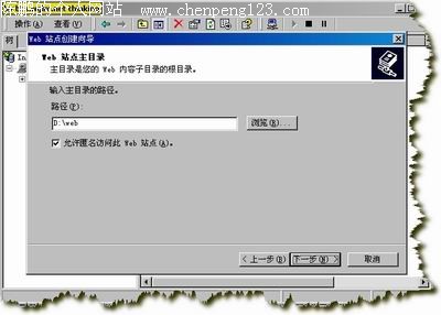 先在硬盘上建一个目录,用来放网站文件,然后在这一步设置网站文件所在的位置,我们这里设置的D盘web目录,建议不要把目录放在C盘
