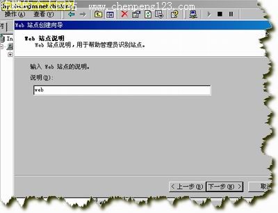 第一步,站点说明,随便,如果您有多个虚拟服务器的话,建议您给每个服务器取个容易记住的说明,方便管理