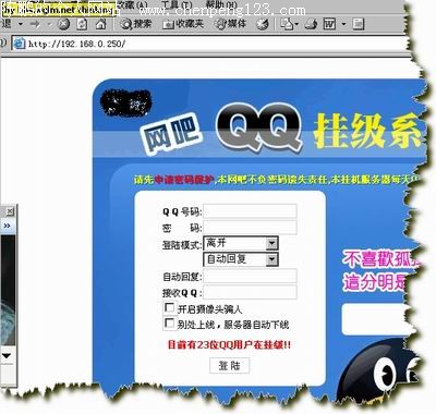 图中的演示是我在http://x.wglm.net/temp/QQ挂机美化版.rar下载的QQ挂机程序,给网吧顾客挂机的