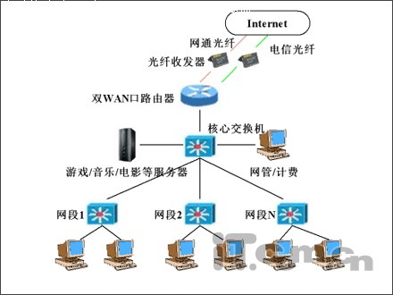随着近几年网吧向着正规化、规模化发展,对网络带宽的需求也越来越大。传统的双绞线接入由于提供的数据传输率较慢,造成网吧内的网络性能低下,严重制约了网吧规模的扩展,采用新的接入方式已势不可挡。 光纤比传统的双绞线提供更大的网络传输速率,单模光纤最高能提供1000Mbit/s的数据传输率,因此光纤成为大中型网吧新的接入方式已是大势所趋。当然,光纤不仅仅能提供更高的数据传输率和更大的带宽。它还有数据传输距离长,抗干扰能力强,可靠性高等特点。 如今,国内的网吧已趋于饱和,特别是一些大中型城市中的网吧,数量众多。在如此庞大的网吧群体中,要保持自己能够盈利,一个服务质量好,网速快而稳定的网络平台是必不可少的。虽然很多网吧都采用了光纤接入,但一些大中型网吧还是感觉到网络带宽不够用,如何才能在低成本情况下增加网络带宽呢?双光纤接入是最好的一种方式。 双光纤接入简介 双光纤接入方案是在单光纤接入情况下还不能满足网吧用户时,增加一路光纤接入,提升网络性能的一种解决方案。双光纤接入的核心在于两路光纤如何连接到路由器。从双光纤接入到路由器我们可以看出,路由器必须具有两个WAN口或具有更多的WAN口,从成本上考虑,双WAN口路由器更适合网吧用户。而双WAN口路由器提供的两个WAN口一般都不能直接连接光纤,因此,从硬件上来看,双光纤接入就必须考虑到两路光纤与路由器上的两个WAN口如何连接。 从目前网吧用户的实际情况来看,主要有连接方式值得网吧用户参考,我们推荐第一种方式。 第一种是采用光纤收发器实现光纤与双WAN口路由器的连接,这种方式最大的特点是投入成本低,也是最适合网吧用户的一种方式。在选择光纤收发器时,性能当然重要,不过更需要注意的是接入光纤介质的类型,如果是单模光纤,那么就要用到单模光纤收发器;如果是多模光纤,则要用多模光纤收发器。 第二种是直接采用双WAN口路由器提供的光纤模块,但这种光纤模块需要另外花钱购买,成本也比光纤收发器高,如果从成本方面考虑,我们不推荐这种方式给网吧用户。