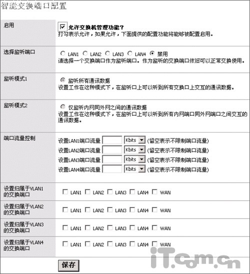 随着计算机的应用普及,千千万万的人们在娱乐、通讯、学习、工作等各方面实现了前所未有的信息化,极大地提高了生活与工作质量。 然而,在计算机给人们带来诸多方便的同时,您是否感受到它也给您带来了许多“不安全”的负面因素?路由器的端口上的管理成为网络管理的重中之重。 飞鱼星VOLANS-4150+ 路由器实现基于端口的VLAN,可实现端口流量控制,数据安全分流,还有独特的数据监听,网内信息可通过公安部门监督,加强网络管理。飞鱼星不单单是个功能强大的路由器,也是一个可网管交换机。与其它路由器最大的不同是现在99%的宽带路由器LAN口都是一个不可管理的交换结构,这对用户做内网构造有很大的用处,并能支持公安局要求的镜像监听端口,以配合专用软件对内网的访问进行监控。 一、 基于端口的VLAN 基于端口的VLAN是划分虚拟局域网最简单也是最有效的方法,这实际上是某些交换端口的集合,网络管理员只需要管理和配置交换端口,而不管交换端口连接什么设备。