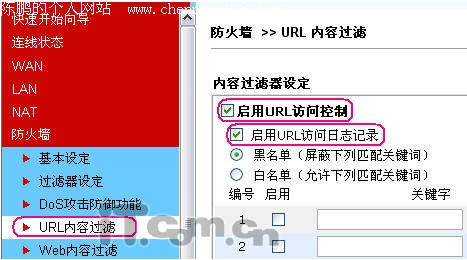网络安全的“管”与“控”一直以来备受企业网管、中小办公用户和家庭用户的关注。 如何能让一台设备通过“简单”的操作对网络进行有效地管控呢? 居易科技最新推出的产品Vigor/VigorPro安全路由系列给出了答案,其”一体化管控“的设计特点是完全从用户的角度对”简单“即易管、易控的有效诠释。用户可以通过丰富的功能、报告和日志平台统一地管理全部安全特性,包括用户访问日志、网站访问记录等。 这次我们先就如何帮助用户查看用户访问记录做一介绍。 1. 登录路由器设置页面。在防火墙>>URL内容过滤菜单里,启用URL访问控制,选择URL访问日志记录并点击确认。