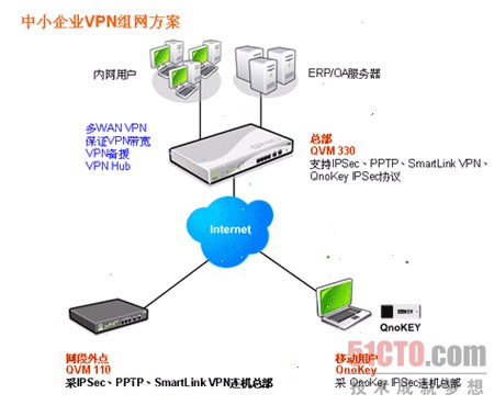 转眼已至年底,回顾下半年的物价不断飙升,导致各行各业面临着运营成本日渐紧缩的巨大压力。但是前瞻明年前景也持续乐观,中小企业版图呈现不小的扩张空间,而企业网络设备升级也随之成了各企业需要面临的问题。据调查发现,越接近年底,中小企业就越苦恼如何在经济考虑与路由器升级的杠杆两端,取得最佳的平衡点。结合市场、企业用户的观点,笔者特归纳出三大原则,帮助中小企业取得双赢的平衡点。 一、中小企业路由器该如何升级? 1、跟着VPN趋势走 在激烈的市场竞争中,中小企业追求的不再只是产品质量的高低或是价钱上的战争,有越来越多的企业开始关注提供优质可靠的服务,例如快速的订单系统、分点资源互通或者客户意见反馈等等……。这些被视为珍宝的无形竞争资产,已不能单纯靠传统的网络系统,而必须依赖可提供总部与分点做安全快速联机的技术达成。因此中小企业在考虑路由器升级时,可将诉求安全快速以及共享总部资源的VPN概念导入,作为中长期作战的准备。 2、选择性价比高入门 当然,企业选择导入安全快速资源共享的VPN概念,在成本上有一定的考虑,动则数10万的设备当然会使人望之却步。而现如今,市面上已经有将VPN概念偏向中小企业用户,许多专门为中小企业所设计的VPN方案纷纷亮相。而事实上,中小企业除选购符合企业所需的基本功能之外,还应兼具一定扩充空间的产品,才不会导致短时间内再次出现升级需要,导致成本的浪费。因此,建议以产品的价比高为标题,强调在中阶的合理价格范围内提供多种功能的应用,可同时满足企业短中期不同的路由器设备需求。 3、掌握简易操作法则: 中小企业在IT的专业知识上,比起大型企业往往略显不足,因此建议在选购路由器设备的同时,应特别着重各类功能在设定与接口操作的简易度。笔者观察,在设定或使用接口上越简单,越可帮助企业大大提升使用效率与效能,不致买了新设备却卡在繁复设定与使用的瓶颈,造成恶性循环,大幅削减了企业运用新设备战斗力。 二、侠诺VPN组网方案 根据以上情况,笔者特别以侠诺科技的VPN路由器产品为例,介绍其主要面向广大有路由器设备升级需求的--中小企业VPN组网方案!在企业总部运用QVM330双WAN VPN防火墙,在分点采QVM110双WAN VPN防火墙,而行动客户端则配置强调极简的QnoKey IPSec客户端密钥,则是针对行动客户端极简的联机设计,强调安全与即插即用,可提高行动用户使用VPN联机的效能。