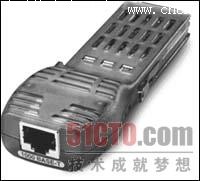 当单一交换机所能够提供的端口数量不足以满足网络计算机的需求时,必须要有两个以上的交换机提供相应数量的端口,这也就要涉及到交换机之间连接的问题。从根本上来讲,交换机之间的连接不外乎两种方式,一是堆叠,一是级联。 1. GBIC和SFP (1)GBIC Cisco GBIC(GigaStack Gigabit Interface Converter)是一个通用的、低成本的千兆位以太网堆叠模块,可提供Cisco交换机间的高速连接,既可建立高密度端口的堆叠,又可实现与服务器或千兆位主干的连接,为快速以太网向千兆以太网的过渡,提供了廉价的、高性能的选择方案。此外,借助于光纤,还可实现与远程高速主干网络的连接。GBIC模块分为两大类,一是普通级联使用的GBIC模块,二是堆叠专用的GBIC模块。 ◆ 级联GBIC模块 级联使用的GBIC模块分为4种,一是1000Base-T GBIC模块(如图1所示),适用于超五类或六类双绞线,最长传输距离为100米;二是1000Base-SX GBIC模块(如图2所示),适用于多模多纤(MMF),最长传输距离为500米;三是1000Base-LX/LH GBIC模块,适用于单模光纤(SMF),最长传输距离为10千米;四是1000Base-ZX GBIC,适用于长波单模光纤,最长传输距离为70千米~100千米。