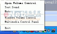 在右方图标 上点击右键,弹出的快捷菜单中(如图2),选择“Open Volume Control”(打开音量控制),会弹出这个软件的设置对话框(如图3),在“Select volume control to adjust(double click) ”(双击选择要调整的音量控制)下方,用鼠标双击一个音量控制项,默认选项是“Master Volume”(主音量),当然我们还可以选择“波形”等控制项。点击下方的“Test Sound”可以测试当前音量的大小。点击“Options”(选项)菜单中的“Preferences”(参数选择),弹出对话中,点击“General”(常规设置)选项卡(如图4),在“Select speed of volume change”(选择音量变化速度)的左方,有五种音量调整变化速度,就是在我们按下左键或右键的时候,音量变化的快慢,根据需要进行调节。