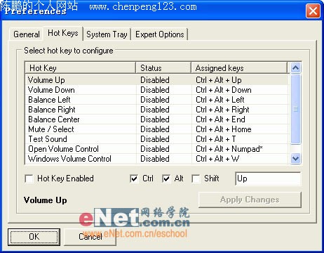 点击“Hot Keys”(热键)选项卡(如图5),可以对升高音量、降低音量、静音等选项选择一个热键来控制。