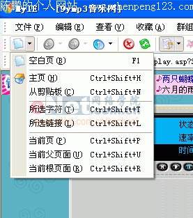 点击此选项,就会弹出一个新窗口,网址是当前页面的父页面,父页面是什么呢?就是当前页面的上一级页面,比如http://www.9ymp3.com/play/play.asp?SongID=4212,它的父页面就是http://www.9ymp3.com/play。