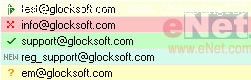 点击“File”(文件)菜单下的“Load”(载入),然后选择一个包含有电子邮箱地址的文本文档。这时软件界面下方便会例出文本文档中所有的电子邮箱地址。再点击上方的 按钮,软件开始一一检测电子邮箱,检测完成之后,可以按列表上方的“Verification result”将检测完成的电子邮箱地址根据可用,不可用,网络超时等情况进行排列,这样一来可用和不可用的电子邮箱地址被放置在一起,便于我们观看。