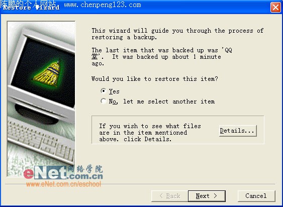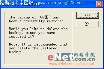 这里默认勾选的是“All the files”单选框,代表恢复刚才删除的所有文件,而其下面“Only the files selected below”单选框,代表可以有选择恢复刚才被删除的文件。你可以根据自己的需求,选择“两个单选框”里的其中一项,然后单击“Next(下一步)”按钮,会提示用户如果有相同文件是否要覆盖,我们保持默认选择即可。而后继续单击“Next(下一步)”按钮,程序会询问是否将刚才被卸载的程序,恢复到原来被删除的位置处。由于大家目的就是转移程序到其他盘符,所以选择“No,let me select the location(不,让我自己选择恢复的位置)”,单击“Next(下一步)”按钮。在接下来所出现页面内,选择你要将其被卸载程序恢复的位置,操作完毕后,单击“Next下一步”按钮直到“Finish(完成)”,出现“确认恢复”对话框(如图3),单击“Yes(是的)”按钮直到下一步“Ok”按钮结束。即可完成程序的转移操作,然后回到自己选择转移程序的位置,你会发现其游戏程序已经成功转移,而且还能够正常运行,没有受到因转移而造成的游戏文件损坏的情况出现。
