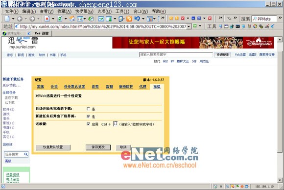 无可否认,老板和员工的关系一直都相当微妙。老板总是希望我们的员工能够像机器人一样地工作,最好是不知疲倦,任劳任怨,不计名利,无私奉献。而我们的员工总是希望能够在上班的时候给自己紧张的工作些许放松……事实上,很多时候老板做的种种限制,主要是害怕员工下载电影、占用带宽、担心在线欣赏电影而怠工。有幸的是,就算你正在对着屏幕发笑,而老板就在你的几步之遥,你应该怎么办?关掉窗口重新打开会丢失当前打开的窗口或信息,而且也显得很慌乱。这时妙用老板键可以帮助我们“力挽狂澜”,往往能够让我们轻松度过难关。 1.Web迅雷 新版的Web迅雷也支持此功能(从1.5.0.87版开始全面支持),而且它更为智能。单击Web迅雷上方“设置”链接,再单击“高级”标签,然后选中“老板键:”后面的“启用”,再设置一个键,如Ctrl+1(如图1),再单击最下方的“保存更改”按钮。这样当我们按下此键时,任务栏托盘中的Web迅雷图标就会消失。