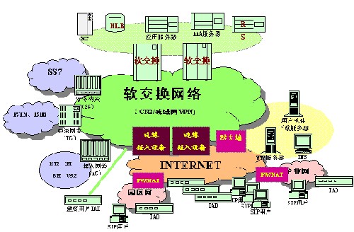 软交换概念自1997年首次提出,很快便得到了业界的广泛重视和认同。几年中,在众多制造商和运营商的共同推动下,软交换产品逐步趋于成熟,功能日益丰富,性能逐渐稳定,标准化工作正稳步推进,软交换技术正走向市场。 迄今为止,全球范围内已有多家电信运营商积极开展了在软交换方面的实验和商用部署。在北美,地方运营公司中有67%的运营商已经有软交换部署,有43%的长途交换运营商也部署了软交换系统。在欧洲,运营商对软交换的发展和应用采用了比较谨慎的态度,但随着软交换技术的逐渐成熟,欧洲运营商也加快了软交换实施步伐;在亚太地区,香港、新西兰、澳大利亚、日本、韩国等国的运营商在软交换应用领域走在前列。2000年至今,中国的电信行业对软交换网络技术也给予了极大的关注,中国电信、中国网通、中国联通、中国铁通、中国卫通和中国移动都已全面启动对软交换的应用尝试及商用部署。 各运营商软交换网络的技术测试和实际商用证明软交换体系在功能和性能上已经基本成熟,目前问题主要集中在以下方面: ◆ 随着软交换网络对PSTN网络的逐步取代,系统应采用何种模式进行大规模组网。 ◆ 如何回避IP网用户的高度自主性,实现电信运营商对业务的可管理性。 ◆ 相对于封闭、使用专用系统的电路交换网,架构于IP网之上的软交换网络易受到外来的入侵,面临安全性的挑战。如何才能解决网络节点、用户信息和业务的安全。 ◆ 如何提供具有QoS保证的端到端实时业务。 ◆ 对于处于企业私网内的用户,如何实现业务的企业NAT设备和防火墙的穿越。 为了解决以上问题,并考虑到IP网自身要彻底解决安全及QoS问题尚需时日的现状,本文在现有软交换网络的基础上引入了新的网元设备,并提出了新的组网思路,该组网方案有助于软交换网络向商用化目标推进一步,有利于传统运营商近期内软交换网络的商业部署。 组网方案介绍 1. 网络结构 网络结构如下图所示: