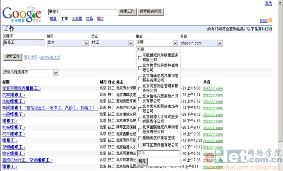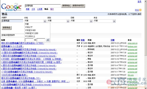 生活需求,对于每一个人来说都是有过的。但是,如何能在最短的时间内找到自己所需求的信息,恐怕还是一个问题。虽然现在网上提供的信息十分的全面,像什么求租、出售、二手等等一些信息,但是,这些信息都一个共同的问题,那就是“时间的问题”。如何知道这条信息是不是最新的?是不是你所需求的?茫茫“网海”中一个一个排查,不但麻烦,而且所花费的时间也很长。 但是就在上周日,Google中国推出了新的“生活搜索”,它能够帮大家在很短的时间找到自己所需求的信息。Google把散落在互连网各处的信息都集合在了一起,我们可以通过它来搜索到最新的信息,使得搜索过程更快捷和方便。 Google生活搜索最大的一个特点就是“时间性”,它能够按照时间搜索排列出最新的信息,比如说你要搜索“房屋出租信息”,它可以列出最新的房屋出租信息,比如说现在的时间是5月23日下午3点,那么它可以搜索出3点以前的最近的房屋出租信息,如2点30分的房屋出租、2点整的、2点以前的信息,然后依次类推,使我们尽快找到最新的信息。