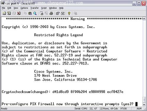 当你第一次启动PIX防火墙的时候,你应该看到一个这样的屏幕显示: