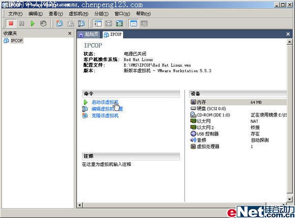 我在这里使用的虚拟机版本是VMware Workstation 5.5.3 Build 34685 ,为了大家更好的理解,我安装了汉化包。
