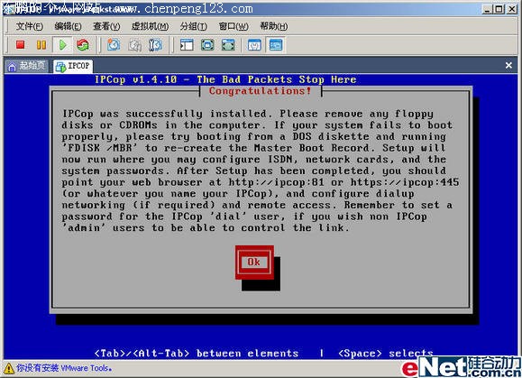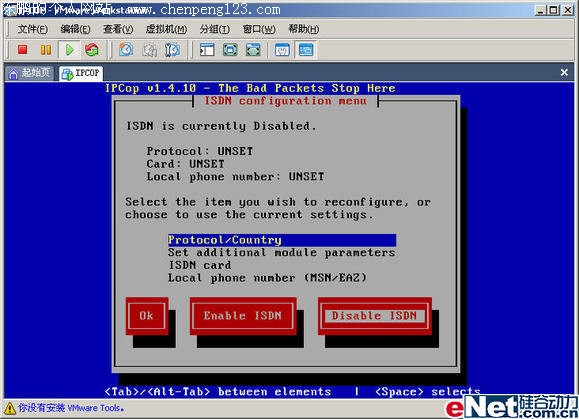 36.IPCOP已经安装成功,请把电脑上的软盘和光盘移走,你要配置ISND,网卡和系统口令.安装完成后,你能用浏览器从http://ipcop:81或者Hppts://IPcop:445(“IPCOP”为你路由的名称),设置拨号配置和远程访问.