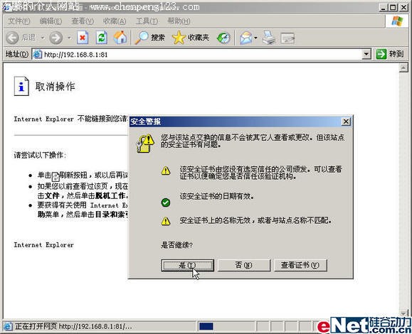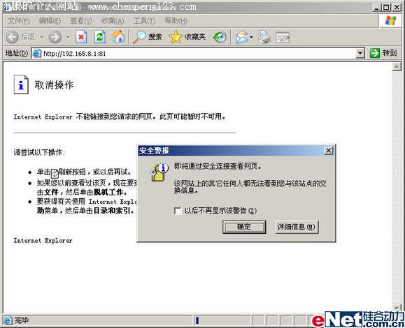 56-57打开IE,输入http://192.168.8.1:81,回车,确定,确定
