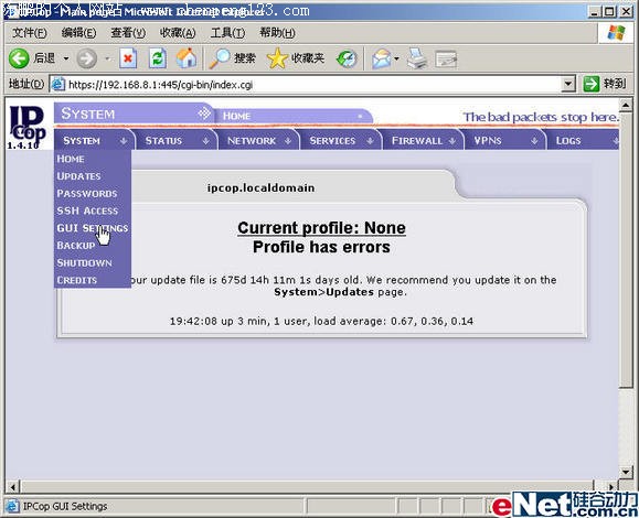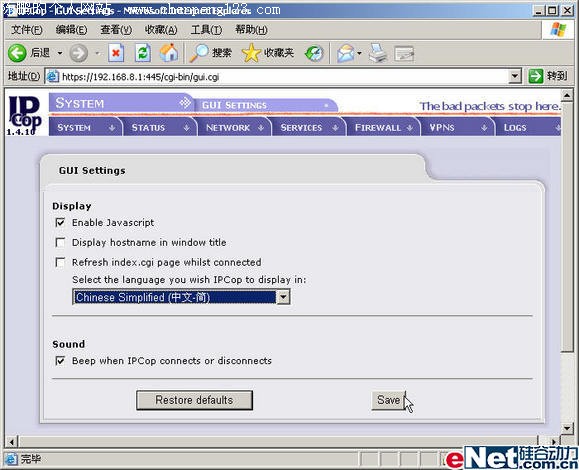 http://203.68.253.130/~huang/video/ipcop/install/以前测试了N遍都没成功,最近安装成功,拿出来跟大家分享一下。