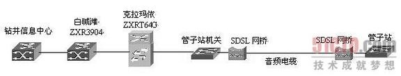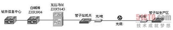 在我们目前的油田数据网络中,是以100Mbps以太网为主,在实际应用中存在一个普遍问题:双绞线的最大传输距离只有100米,很多二级单位的办公地点比较分散,而作为数据网络接入层设备一般也只有一个到核心层设备的上行千兆光口,在这种情况下就需要使用光纤收发器将电信号转换为光信号,并通过光纤来延伸以太网的传输距离。 下面以一个实例来分析一起特殊光纤故障造成的数据网络中断。图1所示为钻井管子公司网络拓扑结构图。