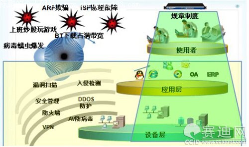 随着宽带网络技术不断发展以及网络基础设施的逐步完善,网络应用越来越广泛。近年来,政府公共职能部门和企事业单位等各种组织机构相继都进行了信息化建设,以达到利用网络来进行协同管理、信息发布,借以降低成本,提高生产力。 然而,由于局域网和广域网的网络基础设施建设日益增长和网络应用日益增多,出现了网络建设和应用效果背驰的现象。多数客户发现投入大量的资金到网络建设当中,并不能保障网络上的应用顺畅起来。 传统业务 面临挑战 随着网络在政府公共职能部门和企事业单位的业务运转中所起的作用越来越大,宽带网络出现问题时造成的影响也越来越多,这给信息主管领导和网络管理人员带来了一些不必要的麻烦,例如这样一些典型的场景: ·业务性能无法保障 某大型家电连锁经营公司广域网业务数据传输总出问题,不知道是什么原因造成的,想花钱改善,又不知在哪个方面投入后一定能解决问题。 为此,信息管理部主管在给总裁汇报工作时,总是“支支唔唔,心中没有底子”,有几次由于网站的动态页面被恶意的大量刷新、访问,导致死机,还被在气头上的老总臭骂了一通。司空见惯的是,办公网络经常在上班高峰时,出现访问互联网缓慢的情况,每逢此时,各部门的主管的质问电话也是“应接不暇”,着实让老李精疲力竭。 ·网络故障防不胜防 某大型能源企业虽然上了很多安全产品,但是网络蠕虫、木马等爆发还是防不胜防。每次爆发就影响网络好长时间这可忙晕了信息中心马主任。奇怪的是,每次爆发的时候内部网络流量突然暴涨,瞬间到达峰值,致使所有员工都没法上网办公。马主任带领部下网络管理人员、工程师有时会通宵达旦地驻守在机房查找根源,从接入路由器、防火墙、交换机、PC机等设备的状态和日志情况一路排查下去,但是没有丰富的专业经验,根本无济于事。况且,防火墙、路由器、交换机等核心网络设备的管理权限由专人负责,出问题时如果管理员不在,机房其他的值班人员也是无法动手解决问题,严重耽误恢复时间。然而即便是花费很长时间才找到疯狂占据带宽的机器,拔掉网线后才把流量降下来。所以,往往在“山穷水尽、疑虑重重”的时候,总是需要打电话给设备提供厂家,邀请厂家安排专业工程师过来,方可解决问题。 一次网络故障排查下来,马主任累的是腰酸腿痛、面如土色,可是领导和老婆却一脸的不高兴。为此,他是苦不堪言。 ·上网行为不好管 某国有银行单位,员工收入不错,所以员工上班时间炒股、玩游戏等行为是“小菜一碟”,工作效率低下。让主管信息中心的王副行长生气的是,网络管理规章制度被阳奉阴违,制度出台后无法监督执行,只能耗费人力在办公区巡视。让他头痛的是,员工上网,如果不封堵带宽永远被占满,封堵就怨声载道,而且封堵后经常会错杀正常的网络访问。为此,他没少挨行长“劈头盖脸”地批评。他也纳闷,为何上网行为没有合适的方法管理呢? ·网速和带宽不成正比 某政府局级单位,科员们平时工作看起来“非常敬业”,领导私自下去一了解才发现,科员们静悄悄地呆在座位上进行多线程下载、BT下载电影,或在线看大片。这些“心照不宣”的群体行为占了局里绝大多数带宽,致使购买带宽的花费越来越多,却永远不能满足需求。由于带宽花费的钱没花在刀刃上,日常电子政务很难保障,单位人数的增长难以实现与办公效率的同步增长 。 对此,局长也曾多次强调要改变这种场面,严惩“不谋正业”的科员,可是科员和领导“打游击”——“你进我退、你退我进、你疲我上”,让领导防不胜防。 以上遇到的种种现象,严重影响了单位的工作效率,干扰了正常工作秩序。用户资金投入的根本目的是为了应用服务,因此市场迫切需要一个网络解决方案,以解决政府公共职能部门、企事业单位的电子政务、电子商务、日常办公等诸多应用充分发挥效能,提升网络运行效率。