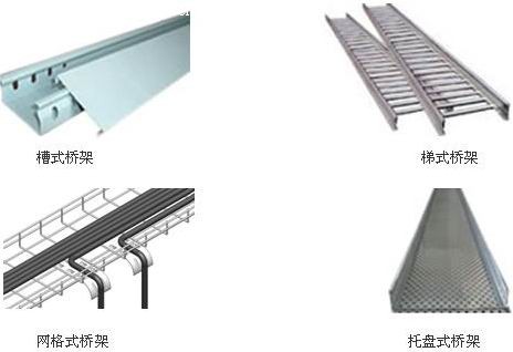 1)、桥架的分类 按组成材料来分:可分为中碳钢、不锈钢、铝合金、玻璃钢的; 按样式来分:可分为槽式、梯式、托盘式、网格式的,如下图;