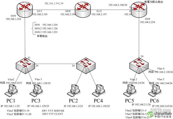 实验名称:配置小型网络 硬件环境:6台PC机,3台交换机,3台路由,3根交叉线,7根直通线。 软件环境:windows xp 操作系统 超级终端。