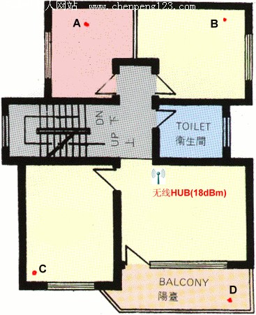 由于主要办公区域在二层,因而将ADSL Modem与无线宽带hub放置于二层,并通过有线方式连接。无线宽带hub高达18dBm的输出功率可有效覆盖二层的全部商用无线网络环境。通过路由自动分配IP使得区域内的电脑无需设置即可实现随时随地互联、接入网络,可以不受场所或房间的限制进行连接以及共享文件、共享打印等。
