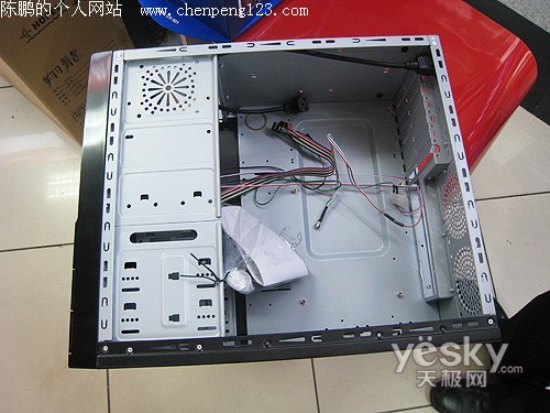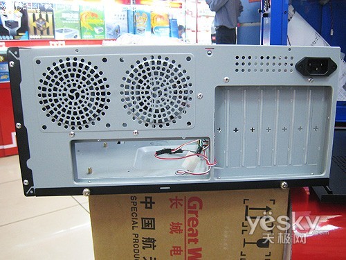 除了靓丽的外表,机箱在散热方面做得同样到位,后面板预置2个风扇位搭配侧面大量的通风孔组成有效的通风路劲,保障了机箱内部的空气流通。