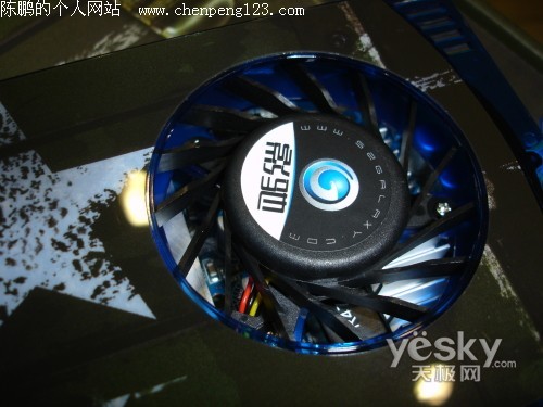 散热部分,影驰9800GT+中将版采用影驰典型的涡轮散热器。在每个显存颗粒位置上配备了散热片,不仅仅只为核心散热,同时也能将显存的热量带走。