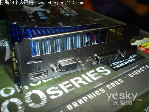 接口方面,拥有DVI+HDMI+S端子的设计,特别是采用原生的HDMI接口无需转接,适应数字家庭看高清电影玩3D游戏绝对不成问题,影驰在产品附件中提供了连接到显卡的音频线,方便HDMI用户使用。