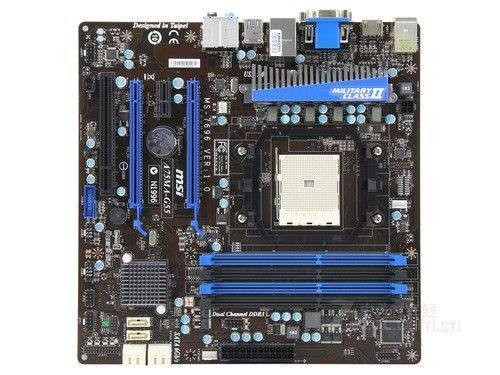 本次测试采用的是微星A75MA-G55主板,该主板基于AMD Hudson D3芯片组,采用Micro-ATX板型设计,秉承微星2代军工级用料设计,提供了2个PCI-E x16插槽、1个PCI-E x1插槽以及1个PCI插槽。该主板提供了4条内存插槽,最大支持32GB DDR333 1866(OC)内存条,内置8声道网卡,千兆以太网卡,6个SATA 6Gbps接口,4个USB3.0接口以及8个USB2.0接口(需前置面板),同时提供了HDMI/DVI/D-sub视频输出接口。