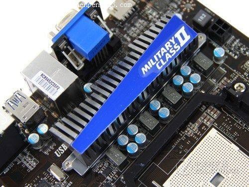 在处理器供电设计上该主板采用4相供电设计,并采用FSC亚铁盐电感搭配全日系固态电容同时覆盖新式栅楔散热器加强主板的散热。